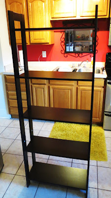 I'm a big fan of making small changes to items you already have to make them work in new spaces. When you move as much as I do, you have to get crafty, or you'll get bored with your same old stuff. Case in point, I have this old IKEA shelving unit I picked up a few years back for about $25, that just wasn't working. I am also using a few other random storage pieces in this catch-all-room in the hopes of turning it into a nice home office and craft space that's at least a little bit inspiring.